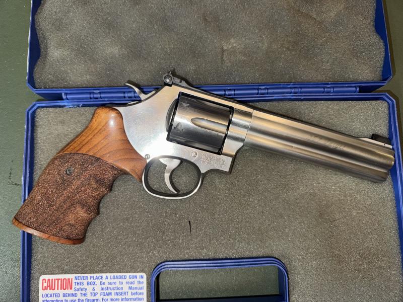 S&W 686 Target 6” with patridge target sights, anatomical grips, wide hammer and smooth trigger. Not to be missed!