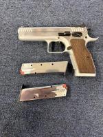 Accessories:Tanfoglio Stock 2 9mm pistol. 2 x 19 shot mags. Range case. Stainless finish. Double action. £600 trade in £550 cash price