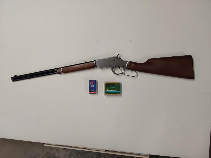 Description:A UBERTI model 2200 Scout Carbine .22 lever action rifle as new, in box with instructions.