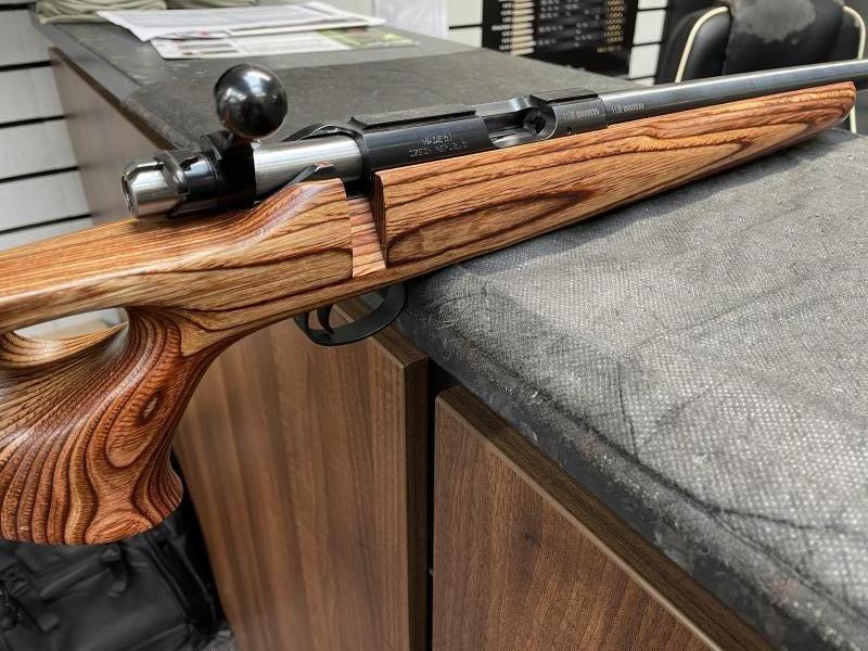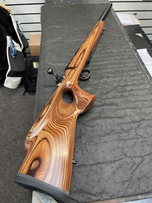 Description:CZ 455 B/A Rifle .22lr, Thumbhole Laminate Stock, 16" heavy barrel, Screw-cut.