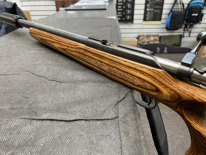 Description:CZ 455 B/A Rifle .22lr, Thumbhole Laminate 16" barrel, complete with sling and Wildcat Moderator.