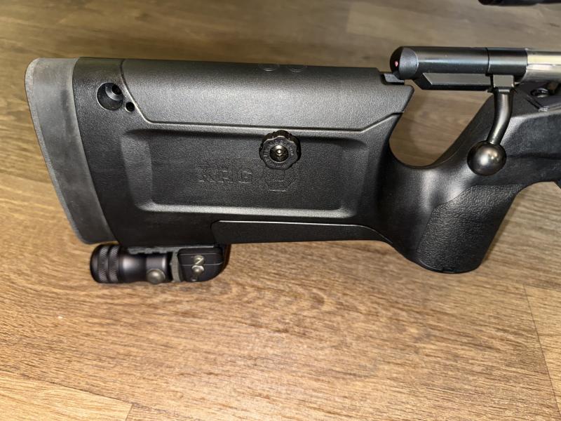 Description:Where to start. This CZ 457 is mint! 20” fluted, threaded match barrel. KRG chassis with adjustable cheek riser. Leupold 6.5-20 sight on a 25 moa picatinny rail. Monopod and American Defence atlas bipod. A fantastic complete package or happy to sell without accessories.