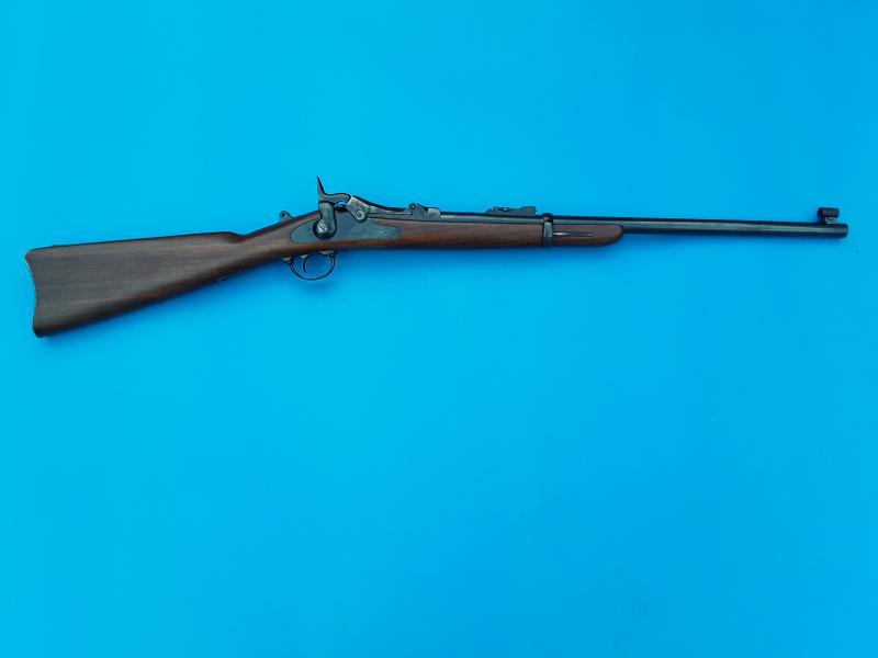 Description:Pedersoli Trapdoor Rifle. A reproduction of the rifle that was used by the US calvary. A powerful gun that could have taken down a buffalo.