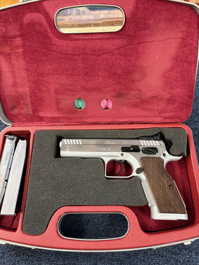 Accessories:Tanfoglio Stock 2 9mm pistol. 2 x 19 shot mags. Range case. Stainless finish. Double action. £600 trade in £550 cash price