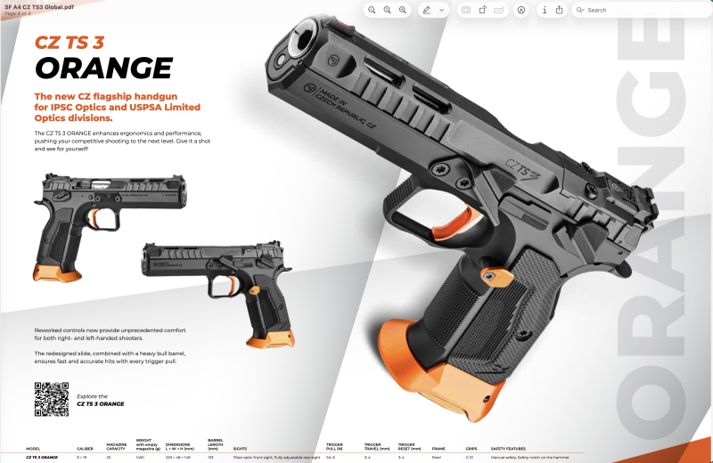 CZ TS 3 ORANGE is the flagship model of the new CZ TS 3 competition series. Optics mount directly to the slide, with no need for plates. The Reload S...