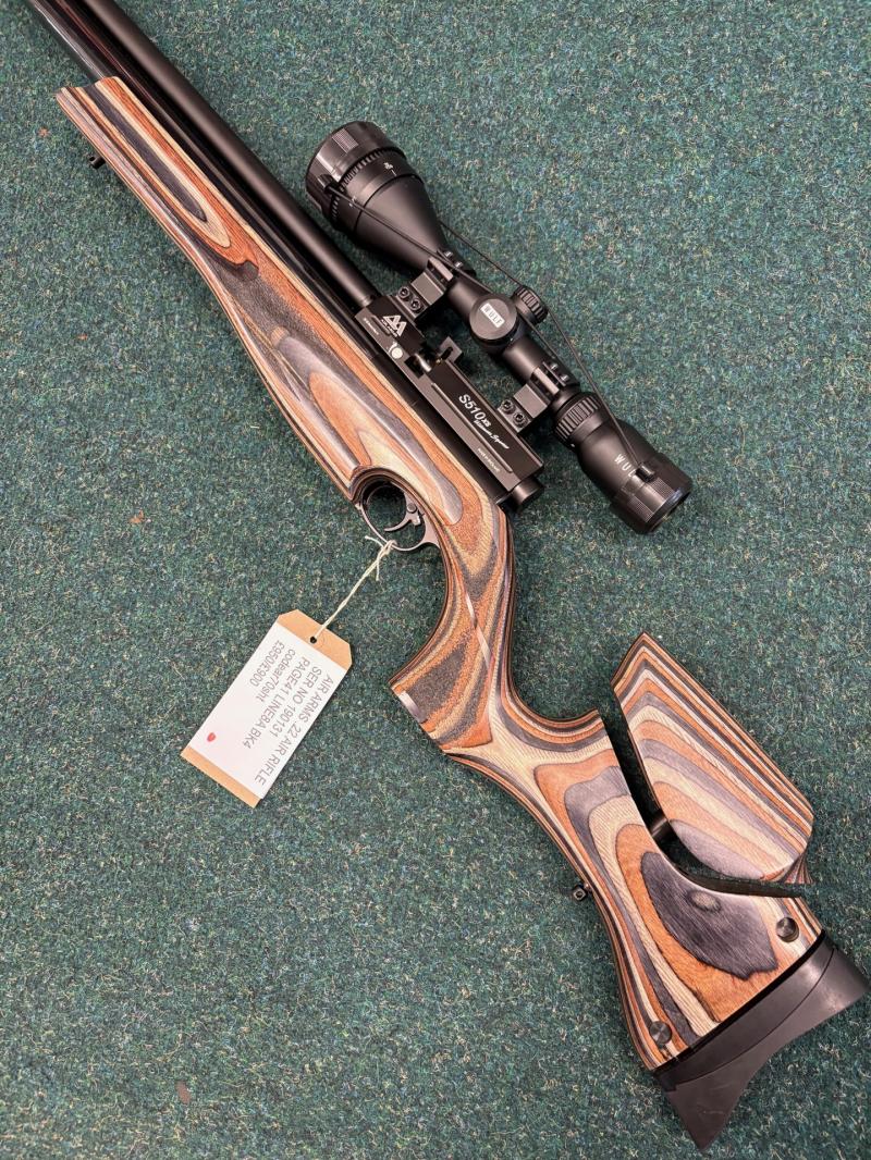 Accessories:Air Arms Ultimate Sporter S510 .22 air rifle. Adjustable laminate stock. Variable power 12-32 ftlb. Screw cut for moderator .Mag fed multi shot. With Wulff Fireball 3-9x50AO scope. Absolutely immaculate as new condition.