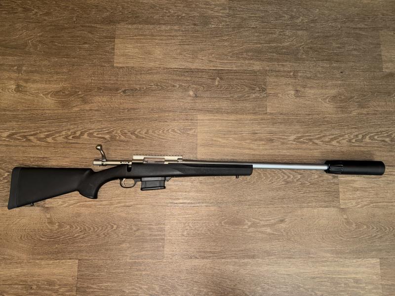 Stainless 1500 with varmint barrel complete with ATEC H2 moderator all in fantastic order.