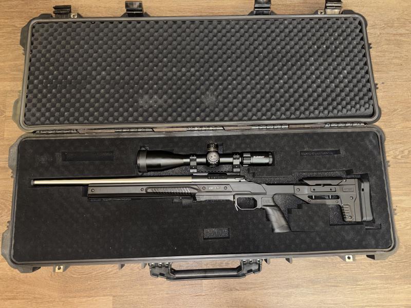 Description:What a package. Bergara B14 with steel match barrel resting in a fully adjustable Oryx chassis. Element Titan first focal plain scope mounted on a 20 moa Tier One rail. All protected in an aircraft approved gun case. No expense has been spared on this little used rifle which we have the pleasure of selling on behalf of a valued customer.