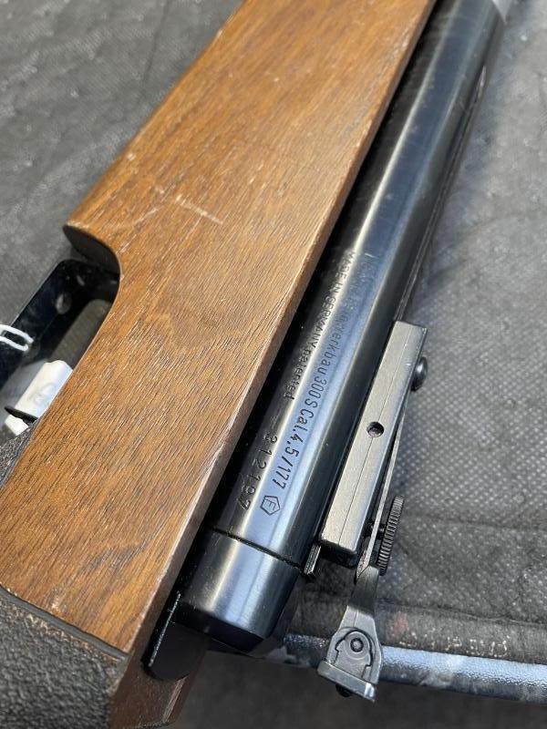 Description:Feinwerkbau 300S Air Rifle, .177, right handed gun all set-up for bell shooting, open rear sight and post front sight.