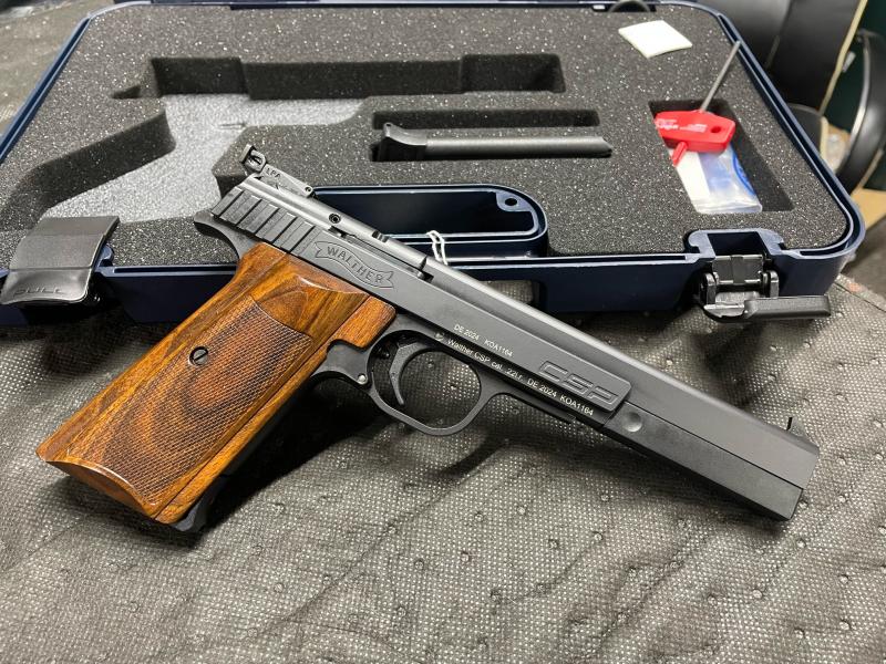 Description:Walther CSP Classic. This is the rebranded Hammerli Xesse which Walther made for years. Walther finally decided to rebrand this incarnation as the new Walther CSP. This is the "Classic", with 1911 style grips, and it is also available in the Dynamic (old IPSC) and the Expert (Target) variations.