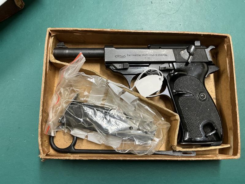 Description:Walther 9mm pistol model P38, in excellent condition and complete with its paperwork and in the original cardboard box