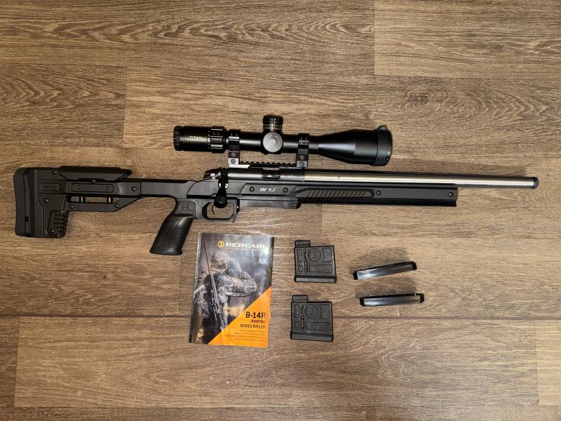 Description:What a package. Bergara B14 with steel match barrel resting in a fully adjustable Oryx chassis. Element Titan first focal plain scope mounted on a 20 moa Tier One rail. All protected in an aircraft approved gun case. No expense has been spared on this little used rifle which we have the pleasure of selling on behalf of a valued customer.