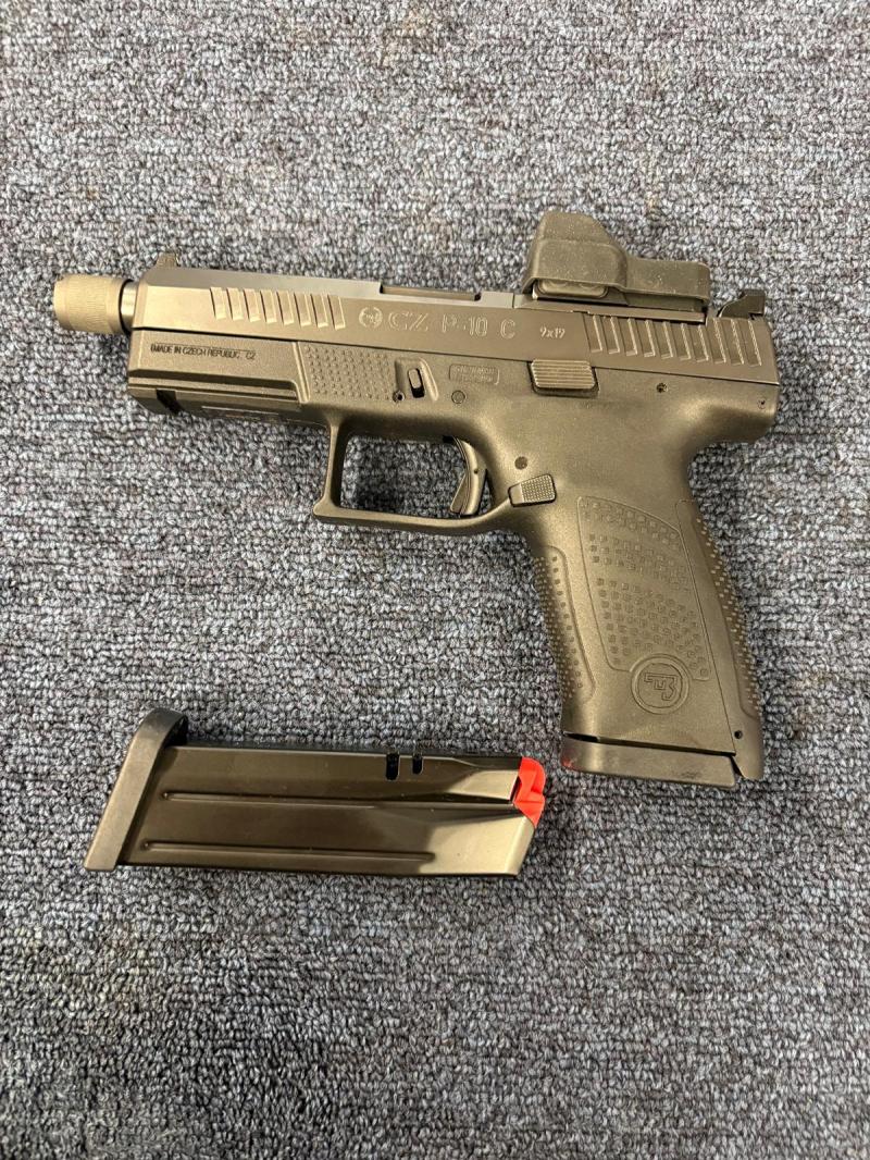 Accessories:CzP10c optic ready. 9mm pistol. 2 x 15 round mags. Screw cut barrel. Fitted with a Vector optic red dot sight. Range case with back straps . In immaculate condition . £600 trade in £550 cash price