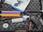 Description:Hammerli AP20 .177 Air Pistol Ambidextrous plastic grip, 6 colour barrel shrouds, fill adaptor, pressure gauge ,Small cylinder