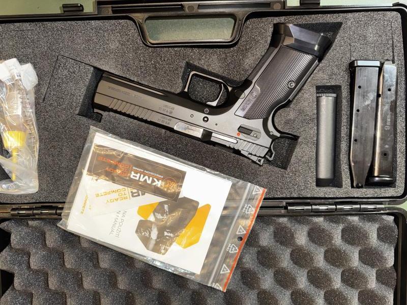 Description:The KMR Orca is the perfect choice for IPSC standard division having seen great success on the IPSC circuit. With crisp single action trigger, billet frame/slide and match barrel with barrel stabilisation this pistol is a tack driver. Happy to sell this mint example on behalf of a valued customer.