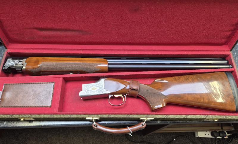 Description:Winchester 101 12 gauge Diamond grade Trap 30" fixed top barrel and M/C bottom barrel Lovely order, cased with 5 chokes